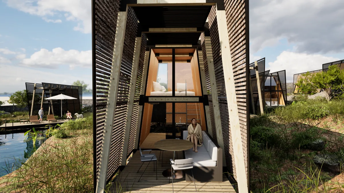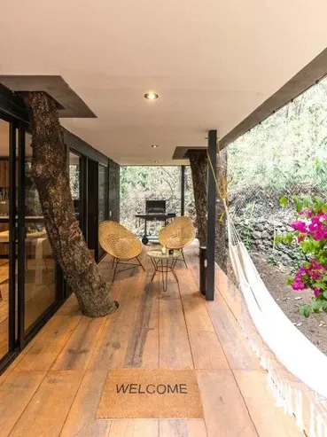 Diseño ecológico con alta demanda en plataformas como Airbnb.